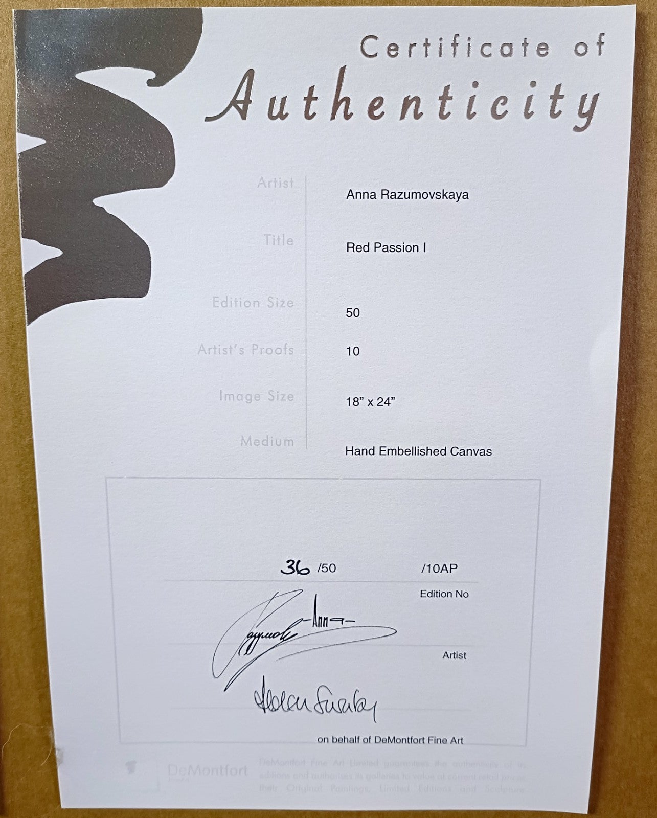 ANNA RAZUMOVSKAYA Hand Embellished Limited Edition Print "Red Passion I" 36/50
