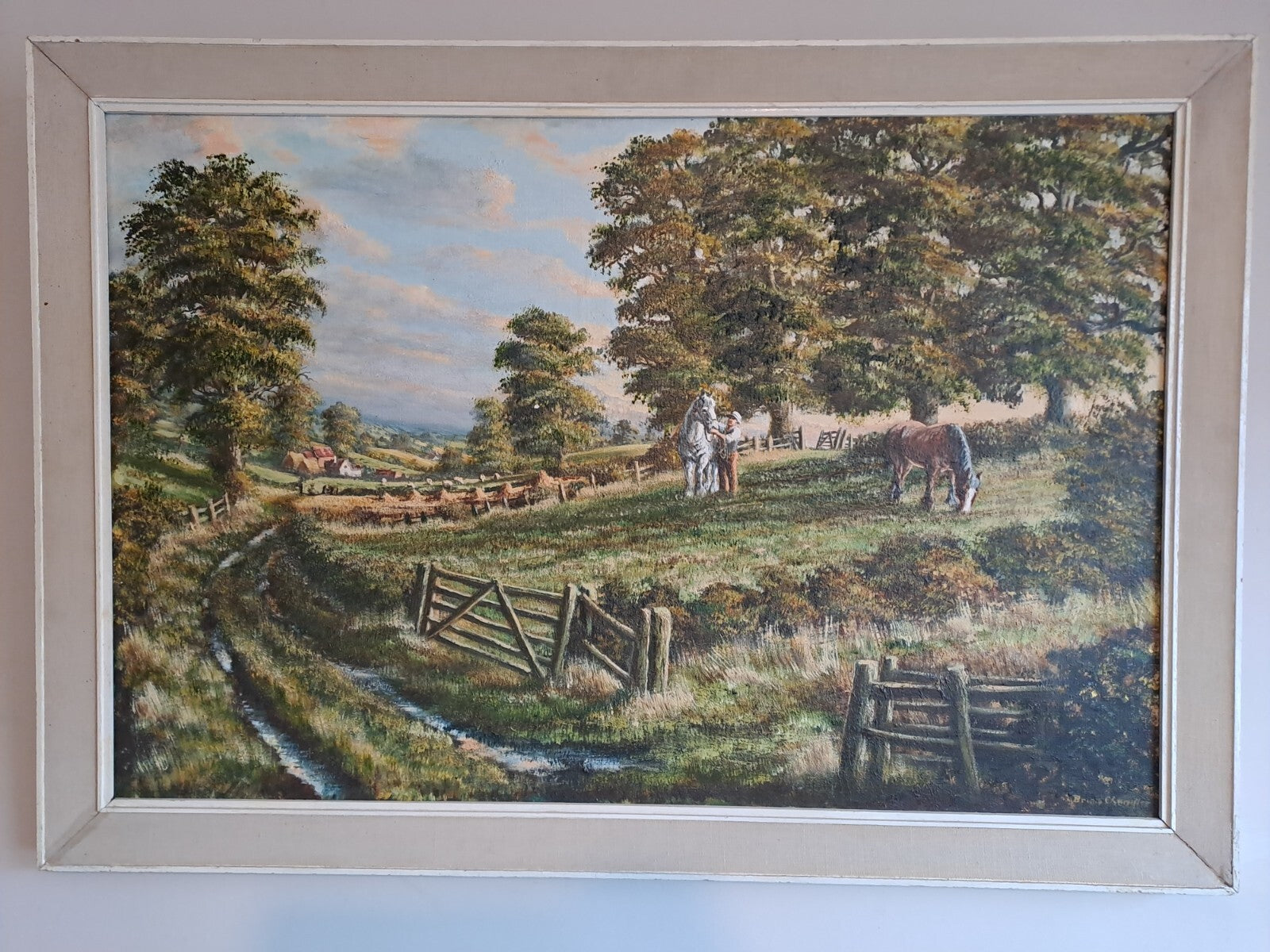 A stunning Oil on Canvas, Fenced Paddock Scene with Horse and Farmer, Signed Brian Chandler, Subject 75x49cm