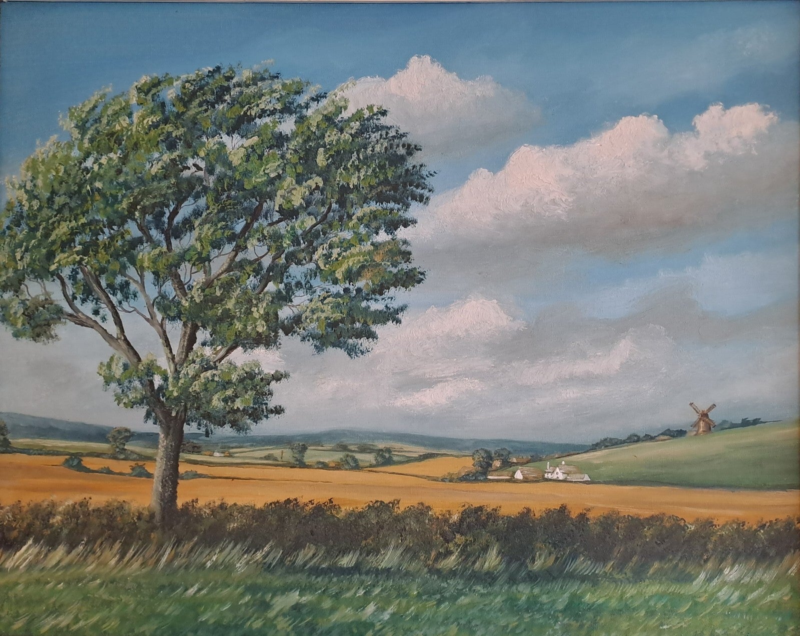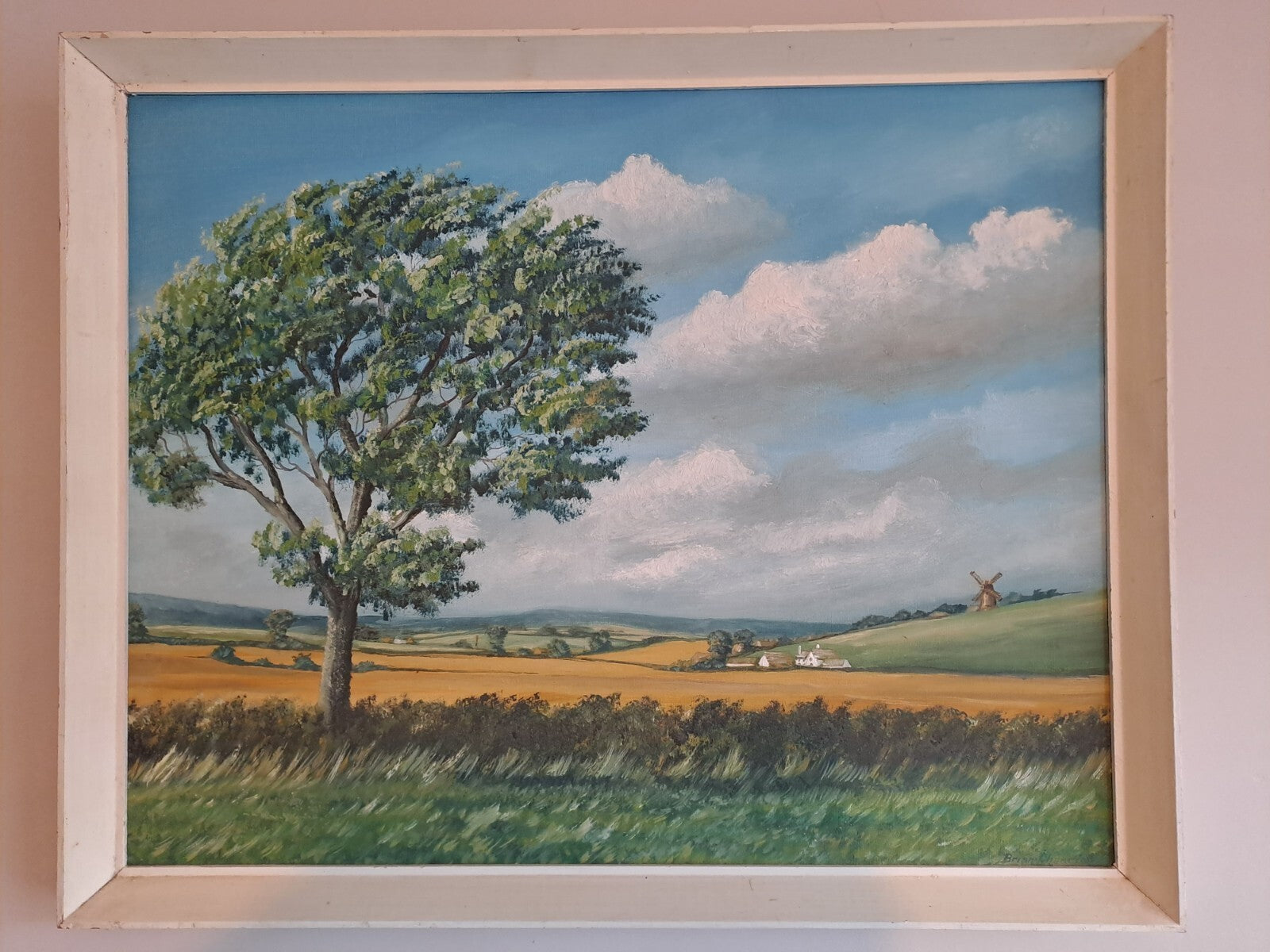 BRIAN CHANDLER Original Oil Painting on Board "Farm landscape with Windmill"