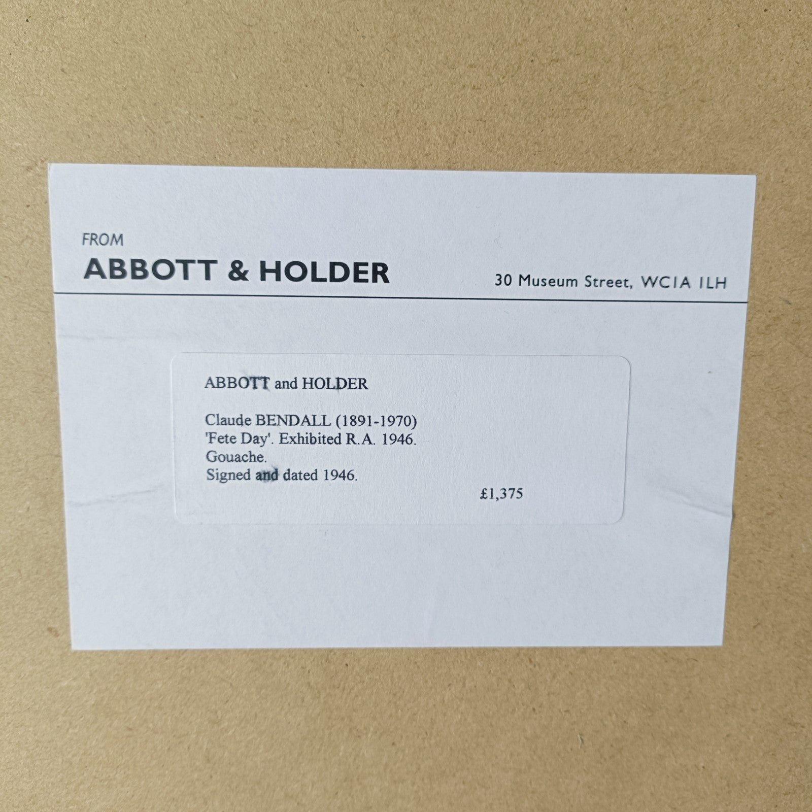 Claude Bendall (1891-1970) - Large Original Gouache Art Work "Fete Day" Full Label Verso has been exhibited at R.A 1946.