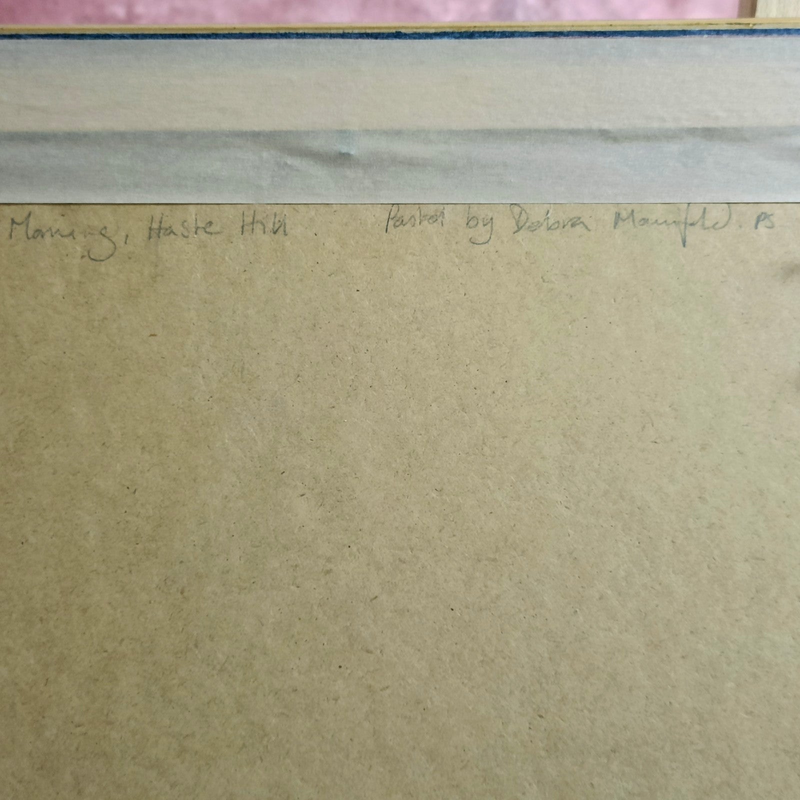 Debra Manifold (1961 - 2002), titled "Autumn Morning, Haste HIll" is a unique and original piece signed by the artist. This framed pastel painting depicts a scene of Haste Hill, Haslemere, Surrey