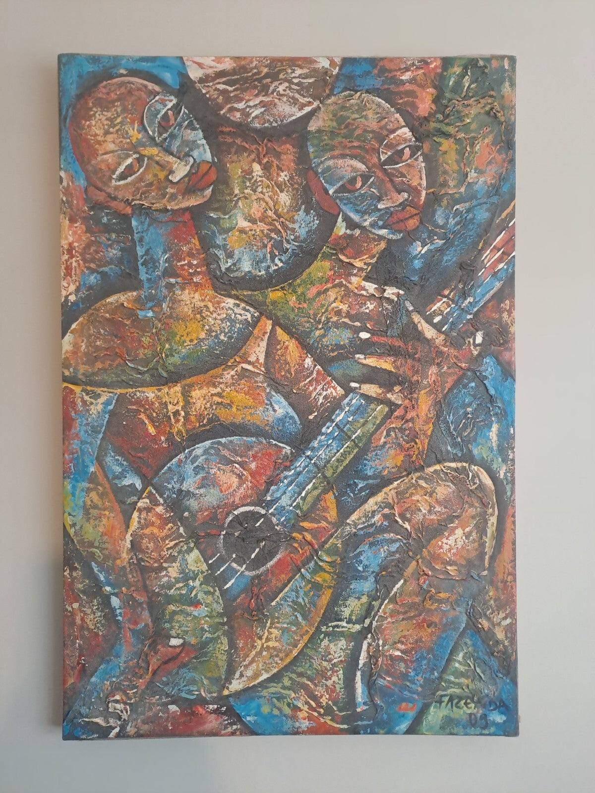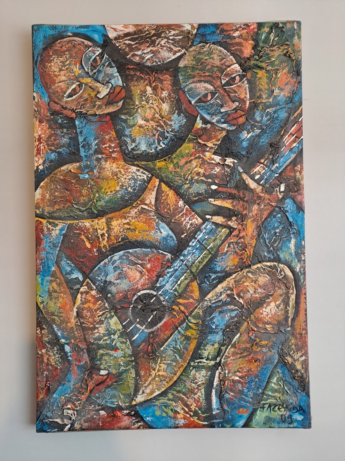 FAZENDA Original Signed Textured Artwork African Art Oil Painting, Chalk