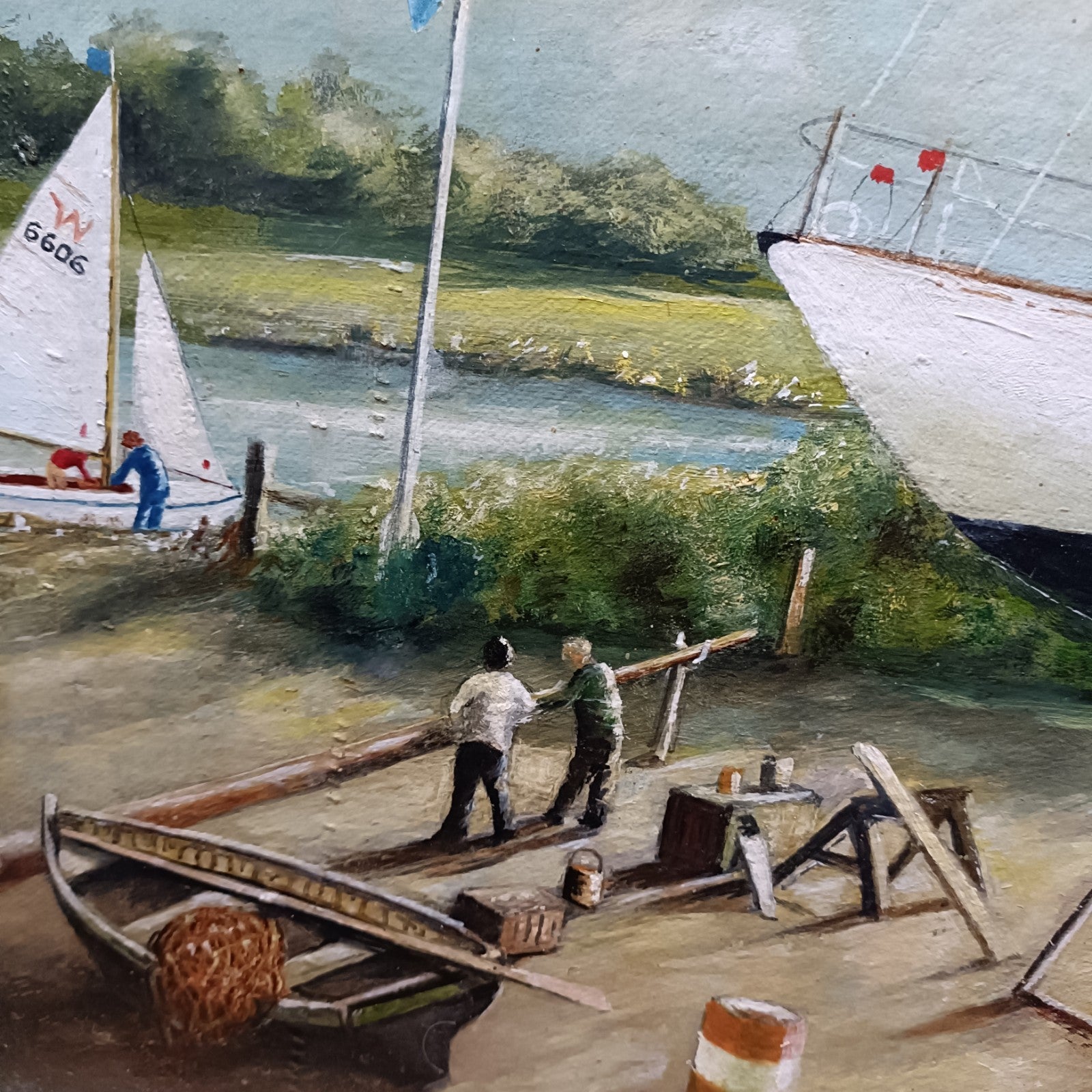 FR WETHERALL Framed Original Oil on Board "Boatyard at Dartmouth"