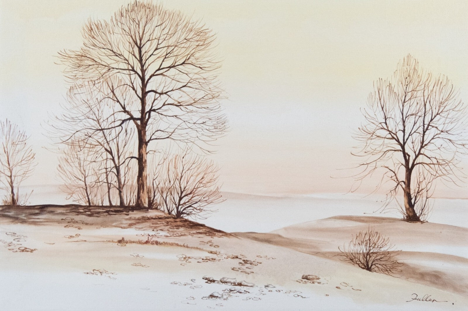 Peaceful scene of trees in a landscape. Signed "Fuller"