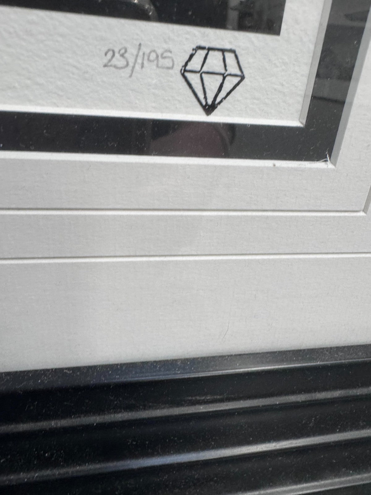 The JJ ADAMS Limited Edition Print "Droids Playing Poker" is a large landscape orientation art piece featuring iconic characters from Star Wars, Terminator, Transformers, and more. Signed by the artist, JJ Adams, and accompanied by a Certificate of Authenticity, this giclée print captures the essence of contemporary art with a playful homage to "Dogs Playing Poker". Measuring 59cm in height and 75cm in width, this mounted and framed print is a unique addition to any art collection for fans of pop culture and artistic expression.