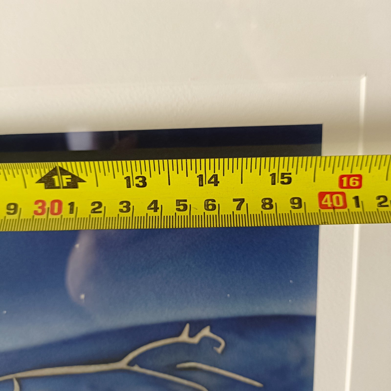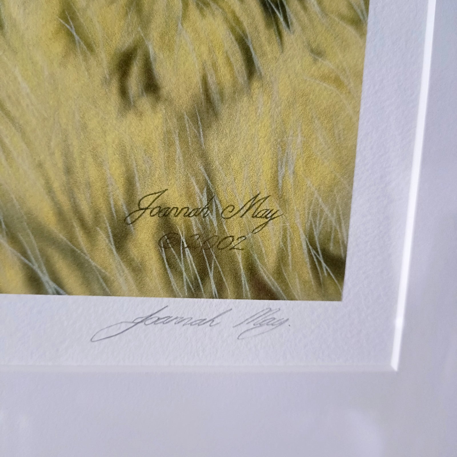The Joanna May signed limited edition "Star gazing Hare" print is a medium-sized artwork featuring a nature-themed design with a mystical feel. The print showcases a picturesque scene of a white horse, stars, and a hare, all set against the backdrop of Uffington Hill and the Berkshire Downs. With only 250 copies produced, this numbered first edition is mounted and framed, making it a coveted addition to any art collection. Joanna May's signature adds a personal touch to this unique and enchanting piece, perfect for those who appreciate art inspired by nature and animals.