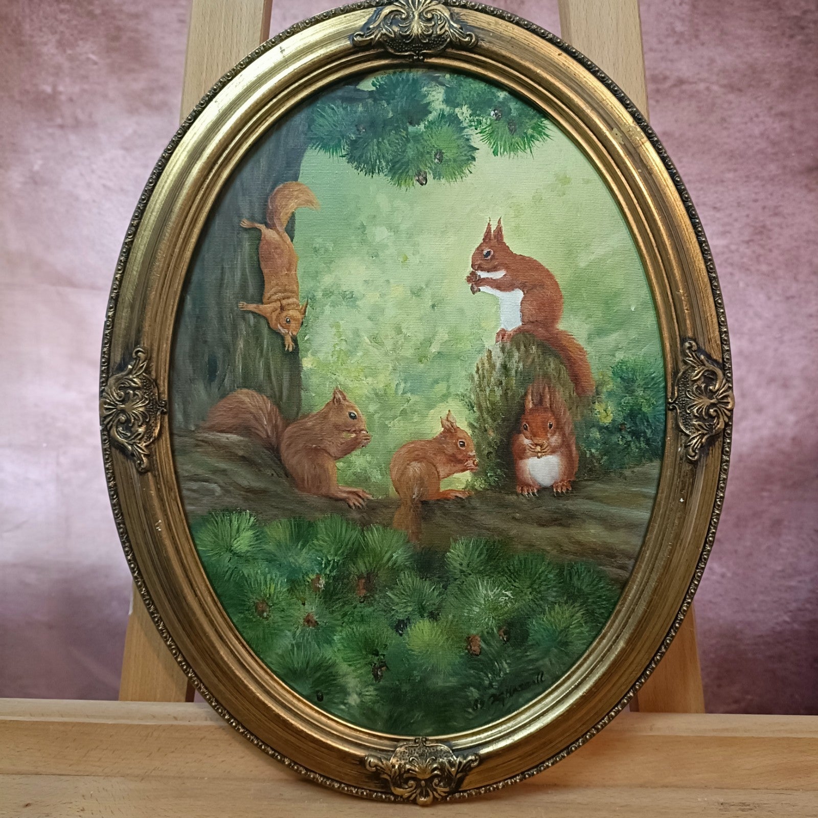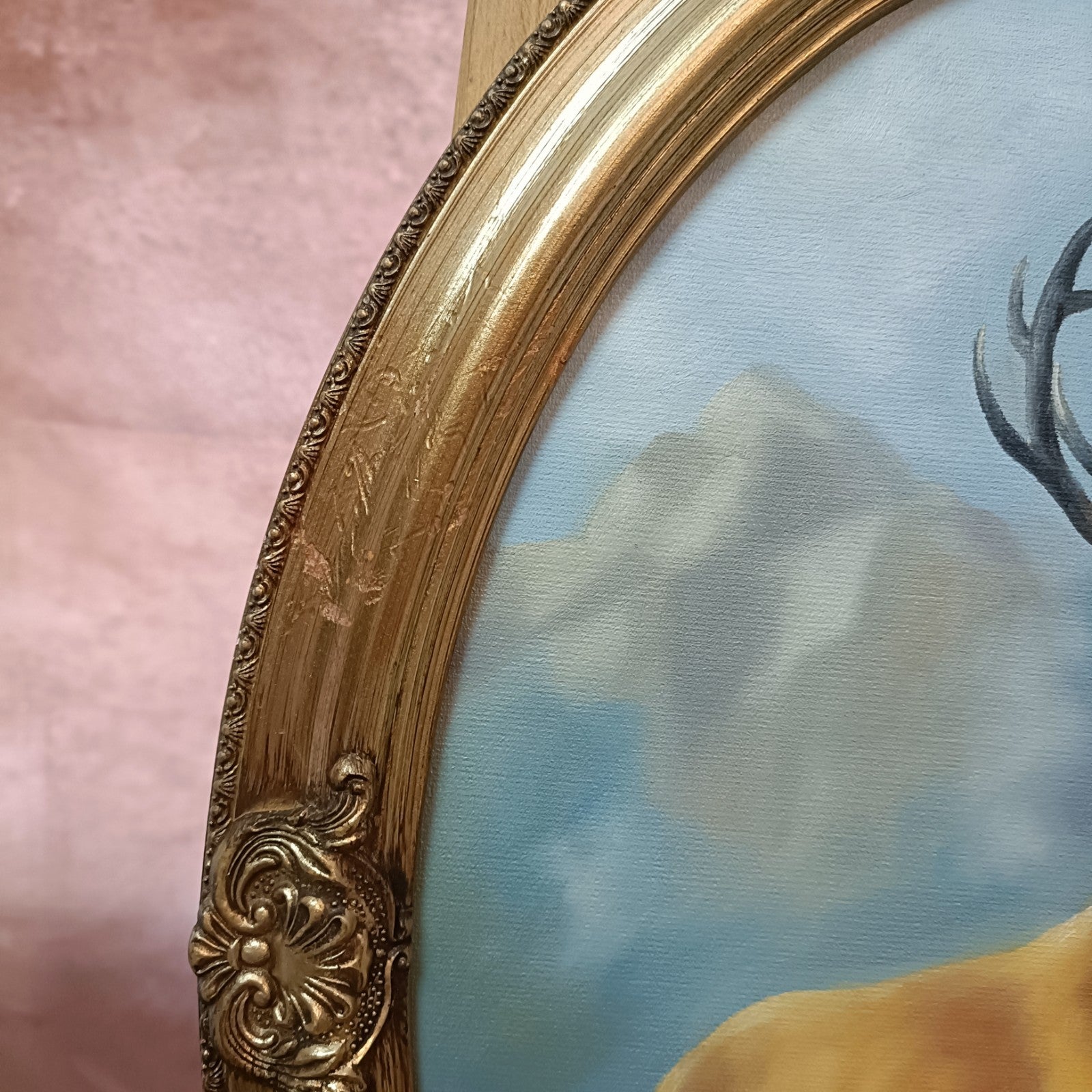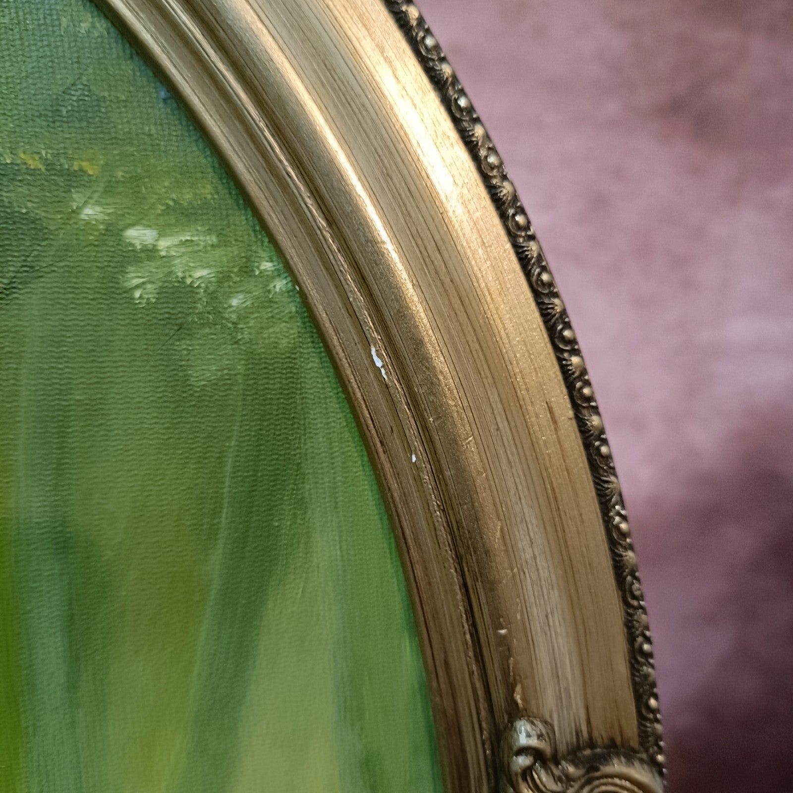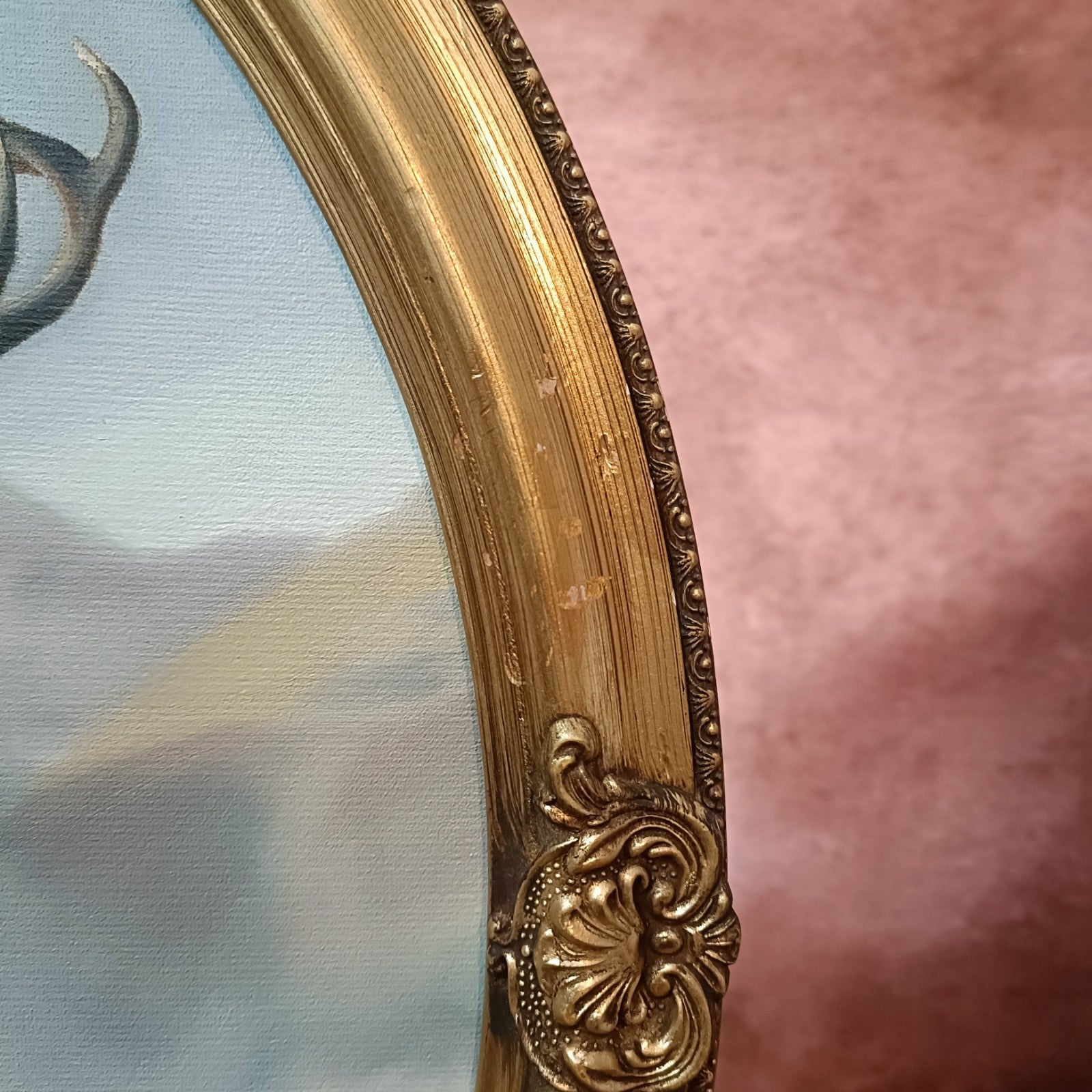 Fantastic original oil paintings (1989) in oval frames . Perfect in a Gallery wall look or maximalist style gallery wall.