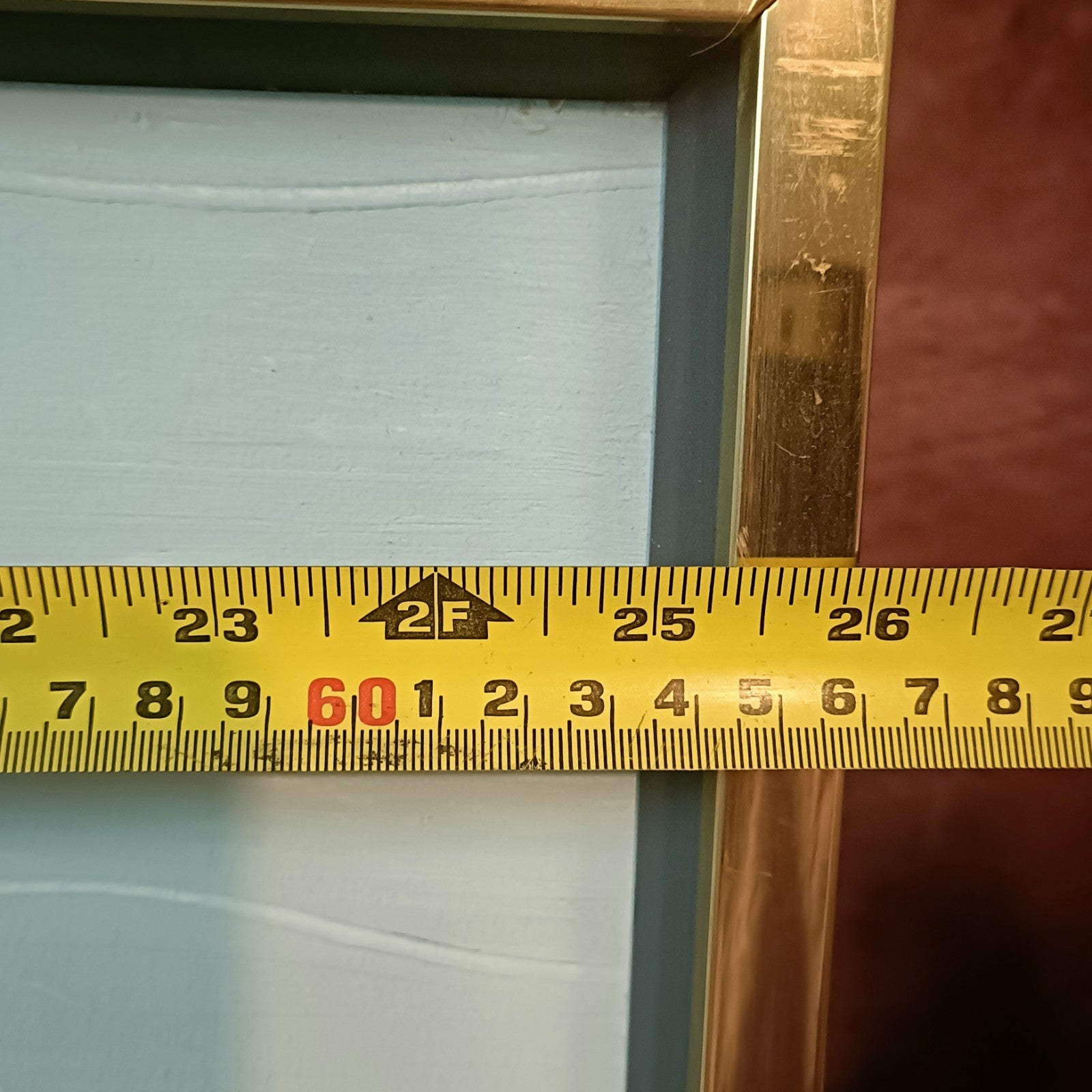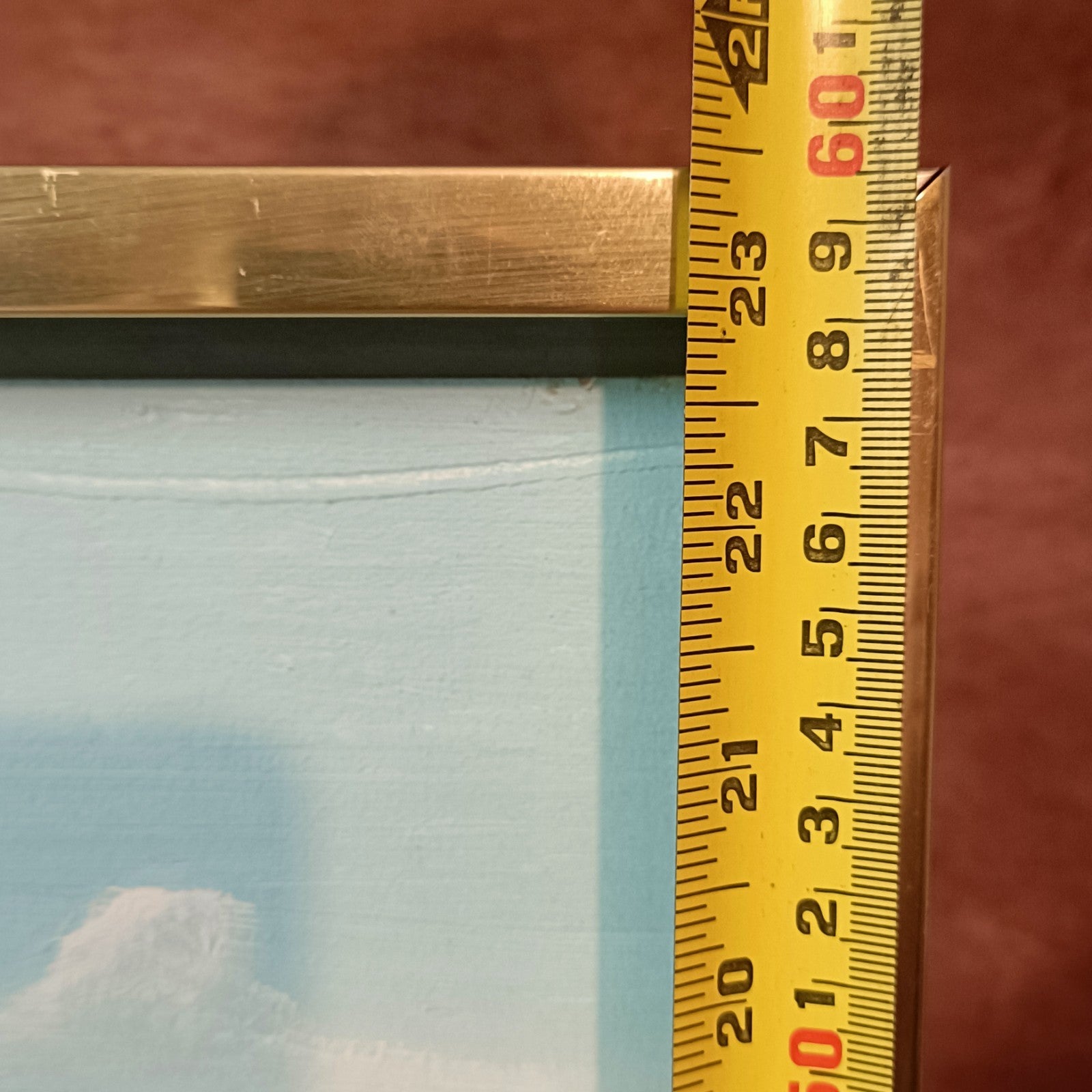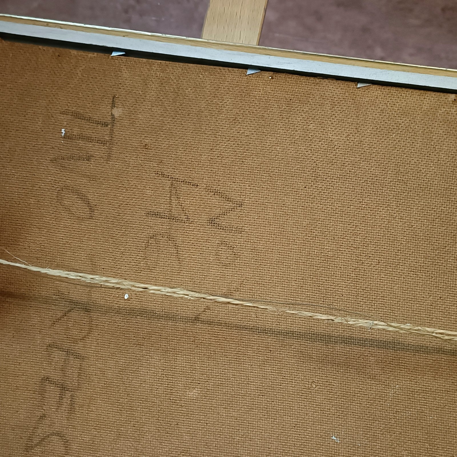 The product is an original oil painting on board by artist Lewis Mitchell, created in the 1970s. Titled "Two Trees", this medium-sized artwork features a landscape with fields, trees, grass, and greenery. The naïve art style and unique one of a kind (OOAK) piece is framed and measures 56cm in height and 62cm in width. Lewis Mitchell's distinctive oil paint and Sgraffito technique bring a charming and rustic feel to this authentic and vintage artwork.