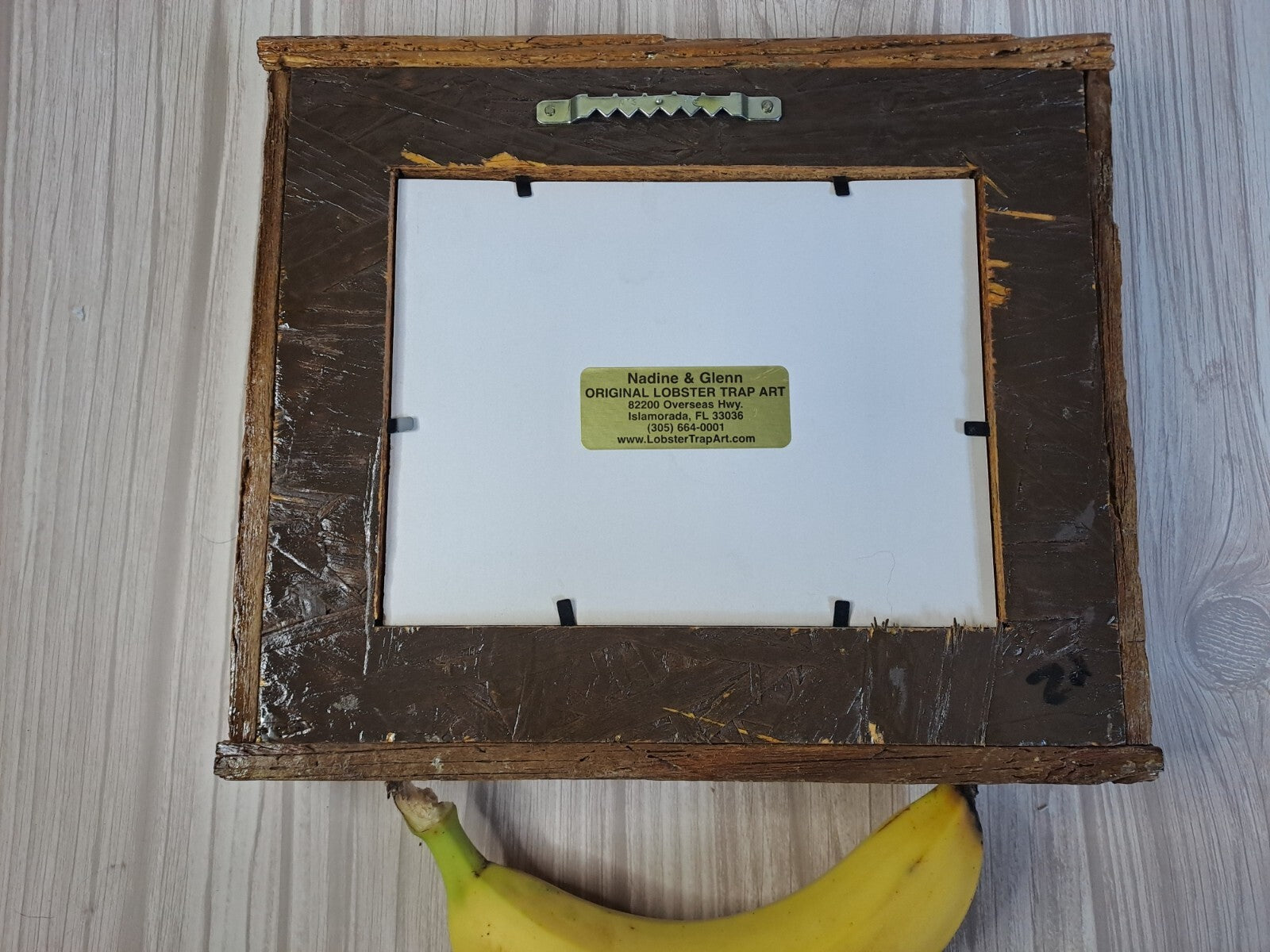 Very good condition. Colours still "pop", Frame has the expected patina of wood being in the sea for 5 lobster seasons!