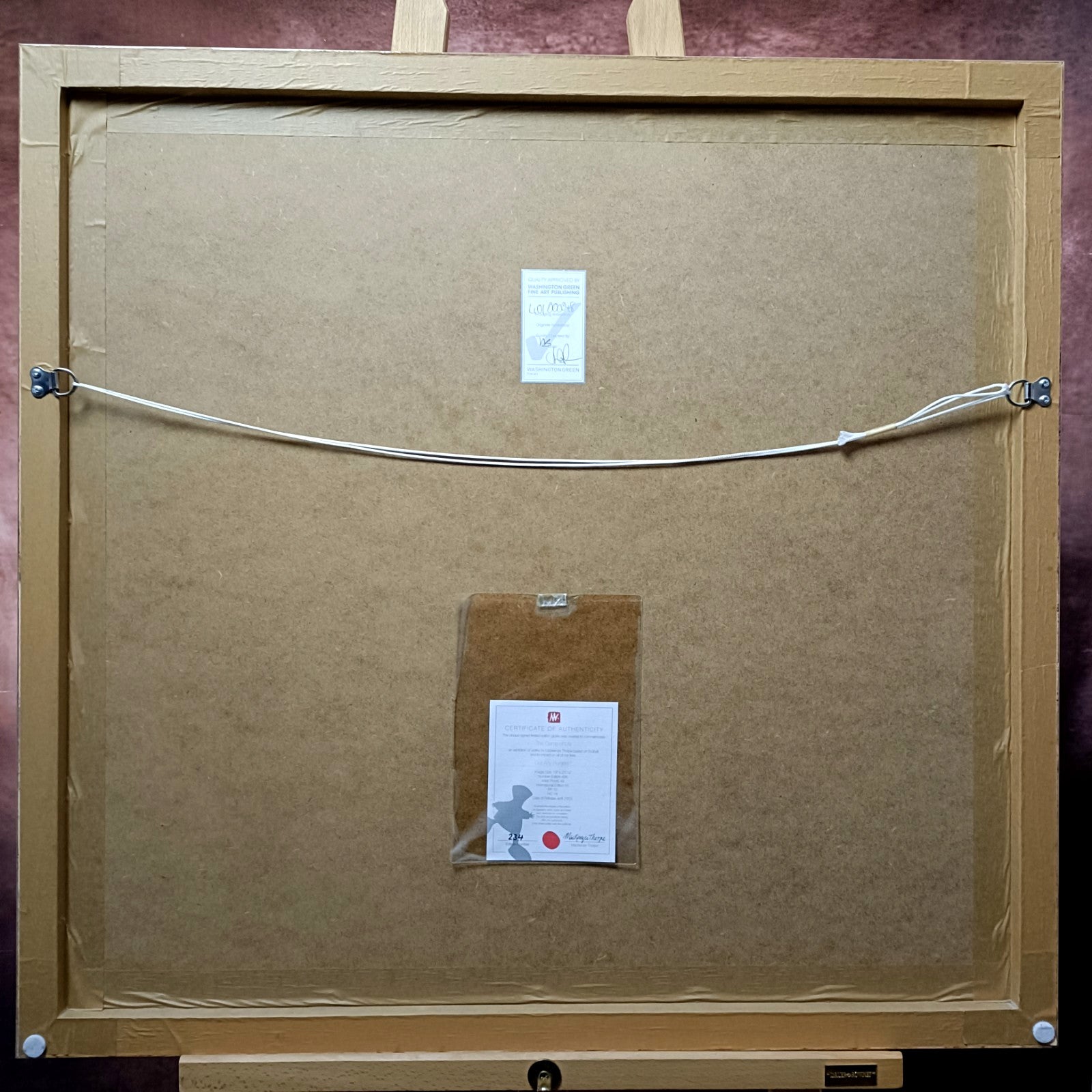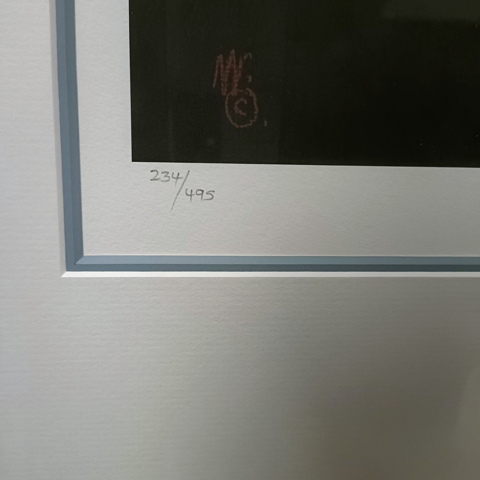 The MACKENZIE THORPE Limited Edition Print "Got Any Burgers?" is a large, framed and mounted artwork on paper by contemporary artist Mackenzie Thorpe. Signed by the artist, this licensed reprint from 2003 features a fast food theme, specifically focusing on burgers. The limited edition print, with a production technique of lithography, measures 51cm in height and 54cm in width, making it a striking addition to any art collection. The print comes with a Certificate of Authenticity issued by Washington Green, adding to its value as a unique and collectible piece of contemporary art.