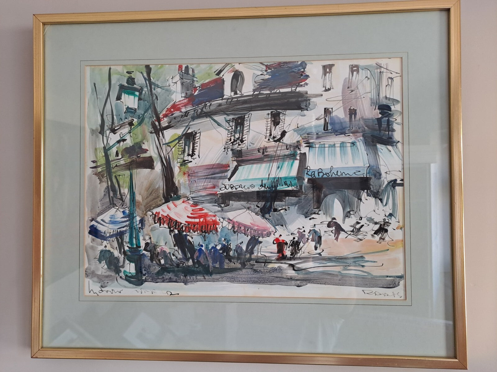 Signed Marius Girard Original artwork of a Parisienne street scene