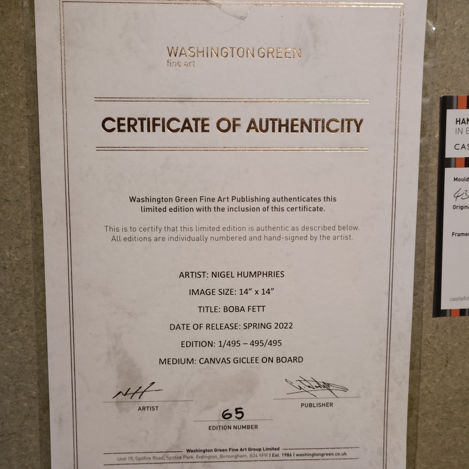 NIGEL HUMPHRIES Signed Limited Edition Print "Boba Fett" 65/495
