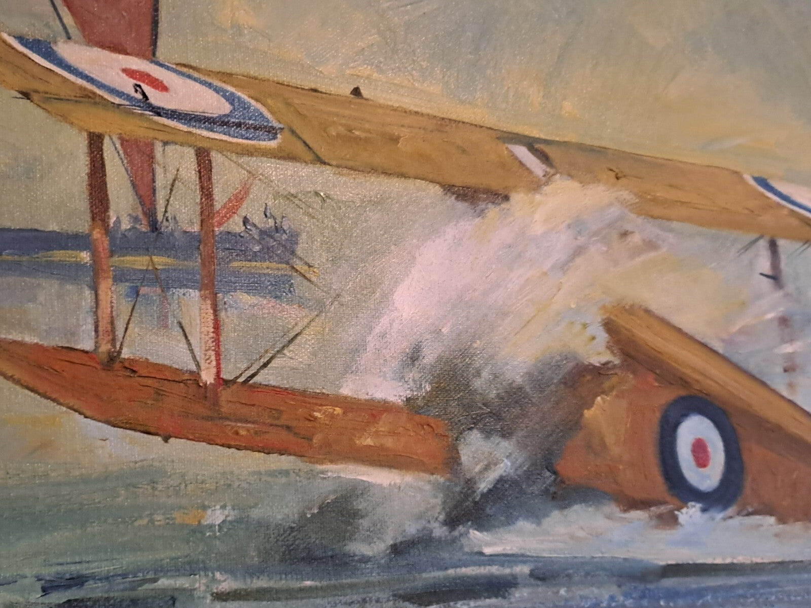 NOEL A BRAY Original Oil Painting on Board "Sopwith camel crash landing"