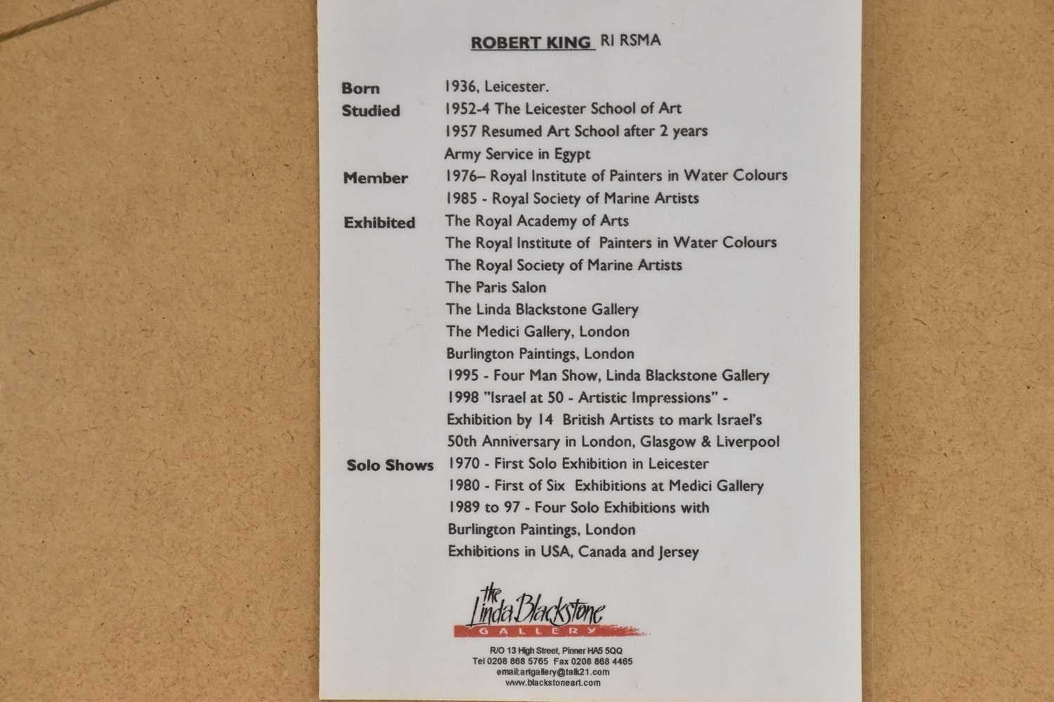 Beautifully moody ROBERT KING (born 1936); watercolour, "Morning Light, Venice", signed lower left and inscribed with title verso, framed and glazed.
