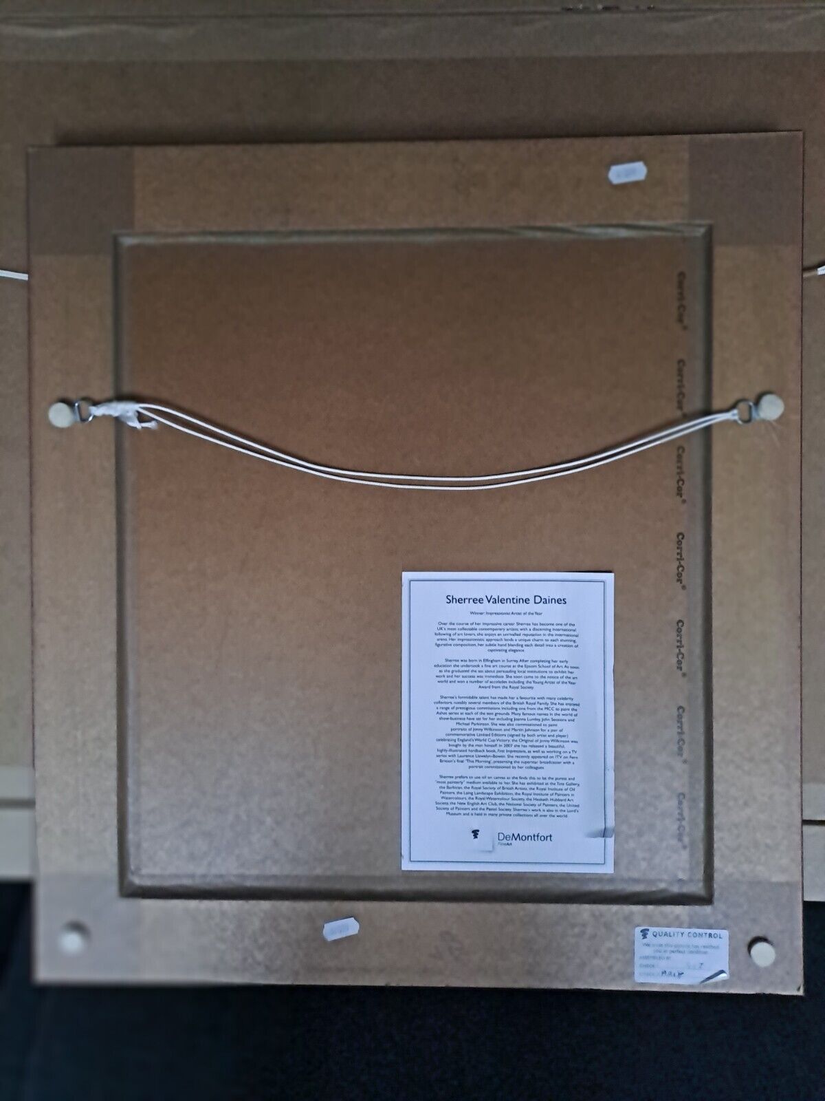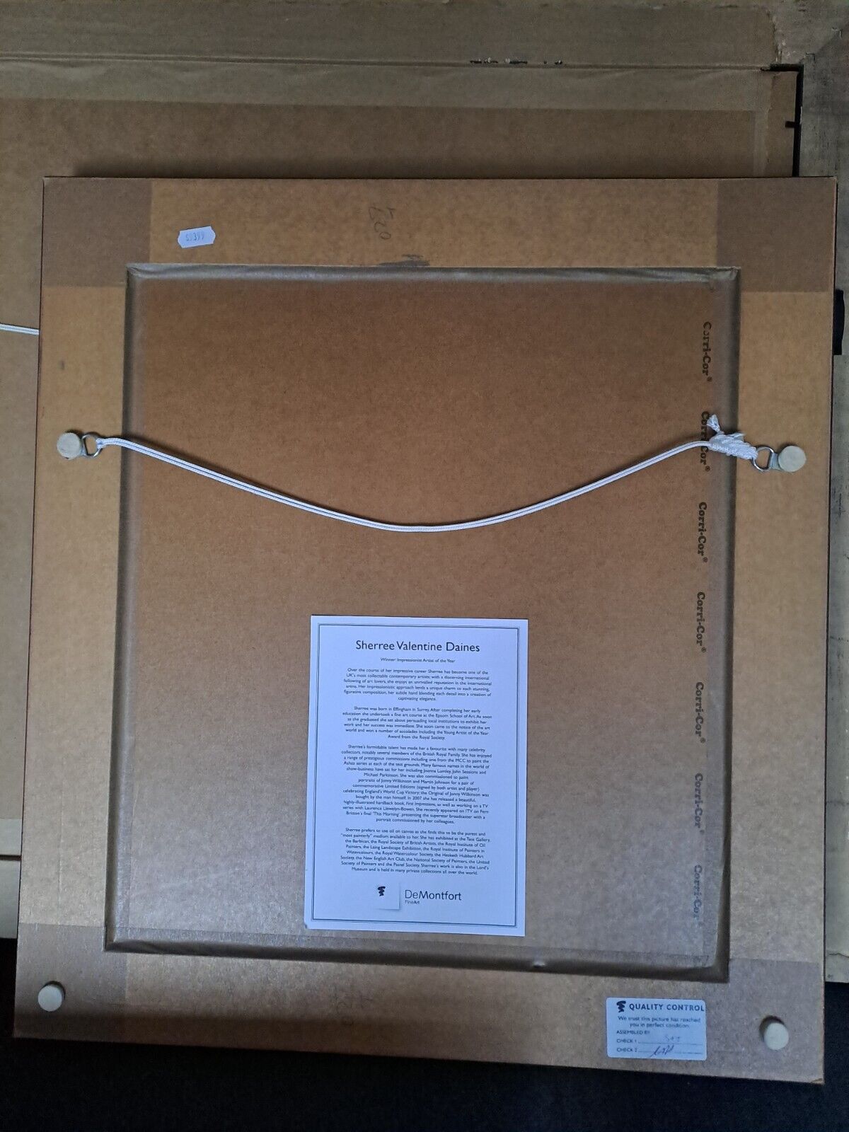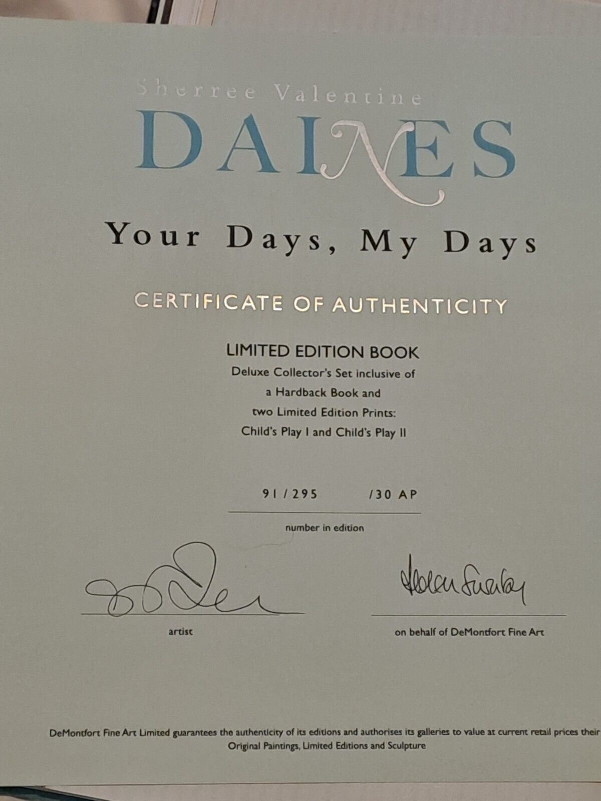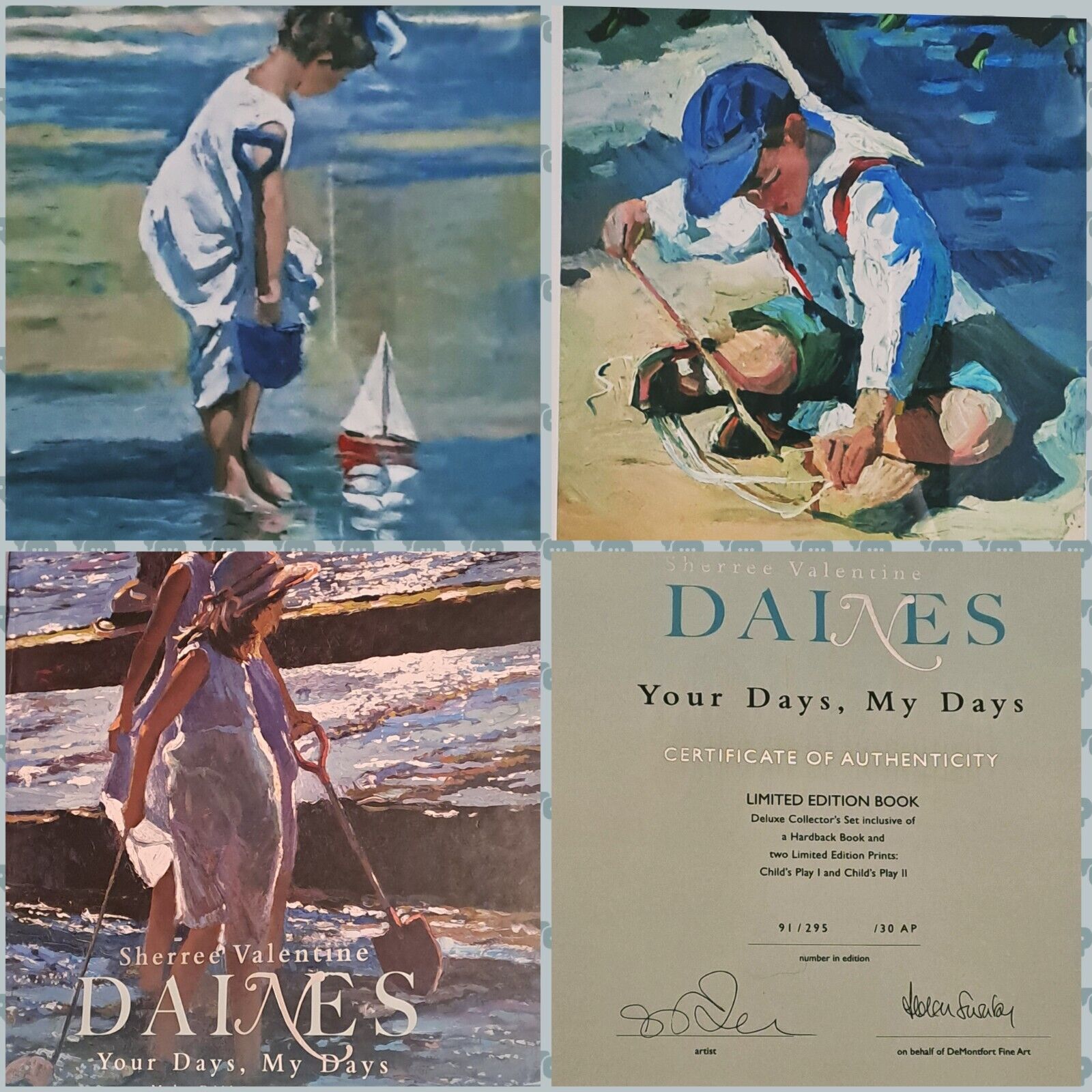 Delve into the whimsical world of Sherree Valentine Daines with this enchanting collection featuring "Childs Play I", "Childs Play II", and "Your Days, My Days". Each piece in this trio captures the joy of childhood, from building sandcastles on the beach to paddling in the sea. The paintings are elegantly framed, measuring 60 cm in height and 54 cm in width, and they bring a touch of impressionistic charm to any room. This limited edition set, numbered 91 out of 295, is a testament to the artist's signature style, with each work signed by Sherree Valentine Daines herself. They come complete with a Certificate of Authenticity issued by DeMontfort Fine Art, ensuring their provenance and value as a collector's item. Whether adorning a child's playroom or adding a splash of nostalgia to a seaside retreat, these paintings are a celebration of the simple pleasures of childhood.