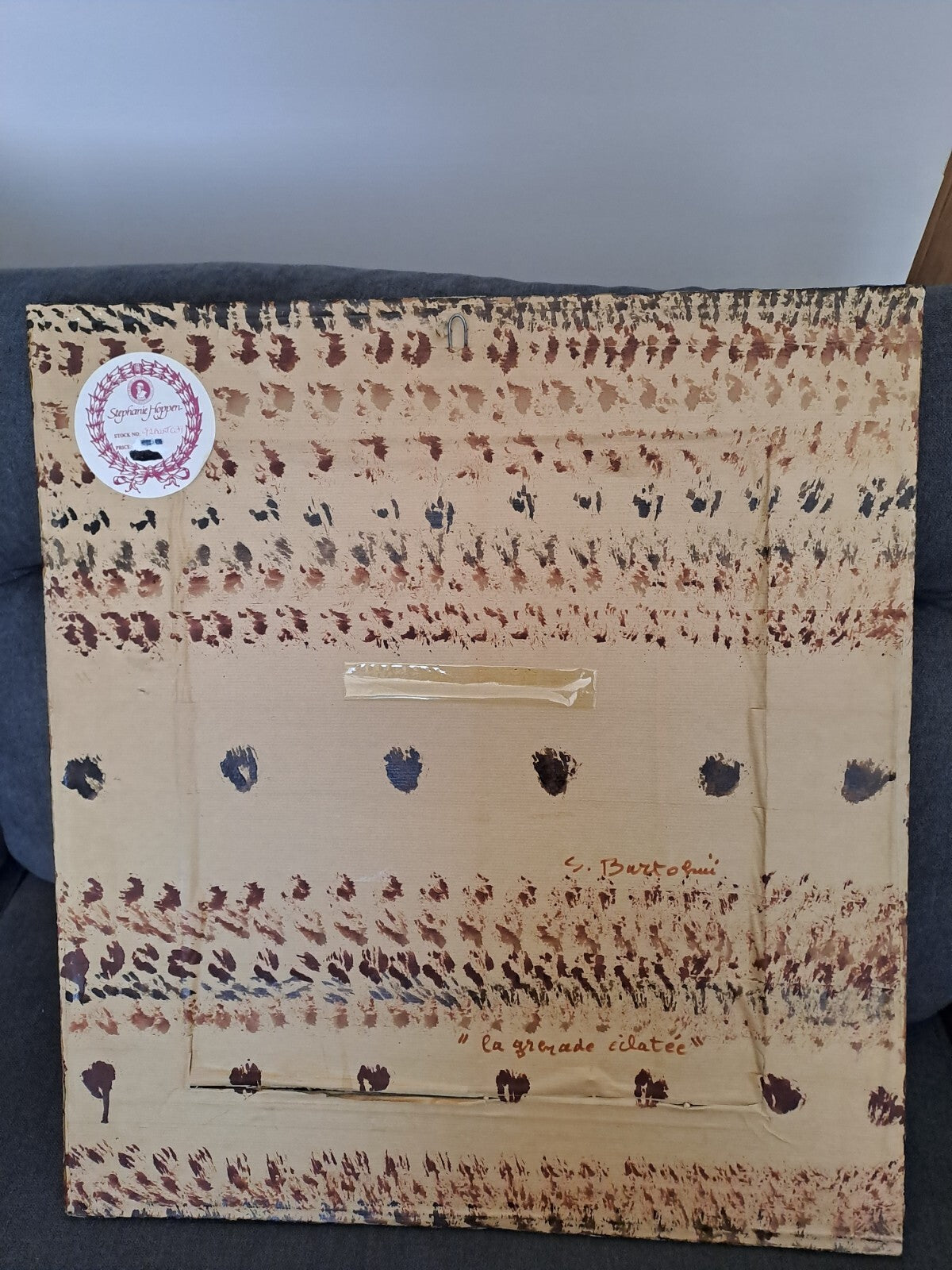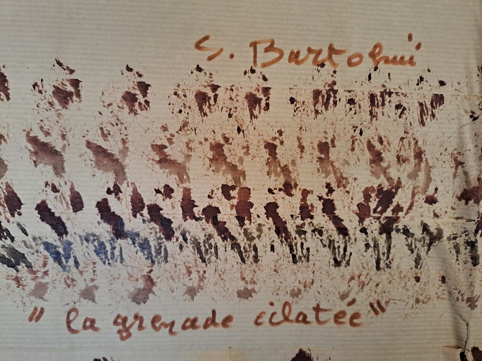 SUZY BARTOLINI painting under glass "La Grenade Eclater" with artist made frame