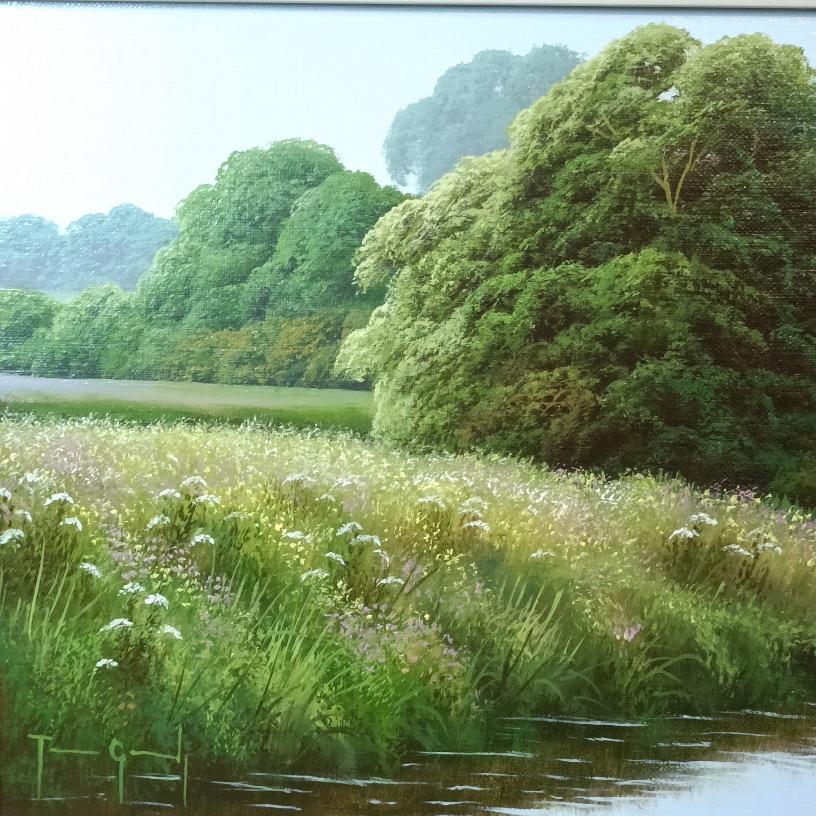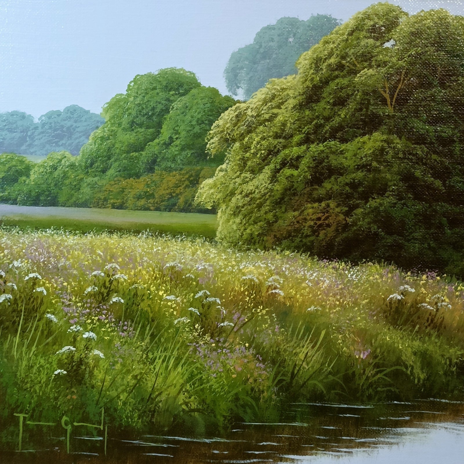 Terence Grundy (1956–2023) was a British landscape painter renowned for his evocative depictions of the English countryside. Born in Bolton, Grundy initially trained as an engineer before dedicating himself fully to art—a transition that marked the beginning of a prolific career. His paintings are celebrated for their photographic realism, natural colour palettes, and immersive depth, often described as “windows into rural England.” Grundy’s work earned widespread acclaim, including commissions from British nobility such as the Earl of Carnarvon, who invited him to paint the grounds of Highclere Castle. Exhibited in galleries across the UK and collected internationally, Grundy became one of Britain’s most successful landscape artists of his generation, leaving behind a legacy of tranquillity, precision, and timeless beauty.