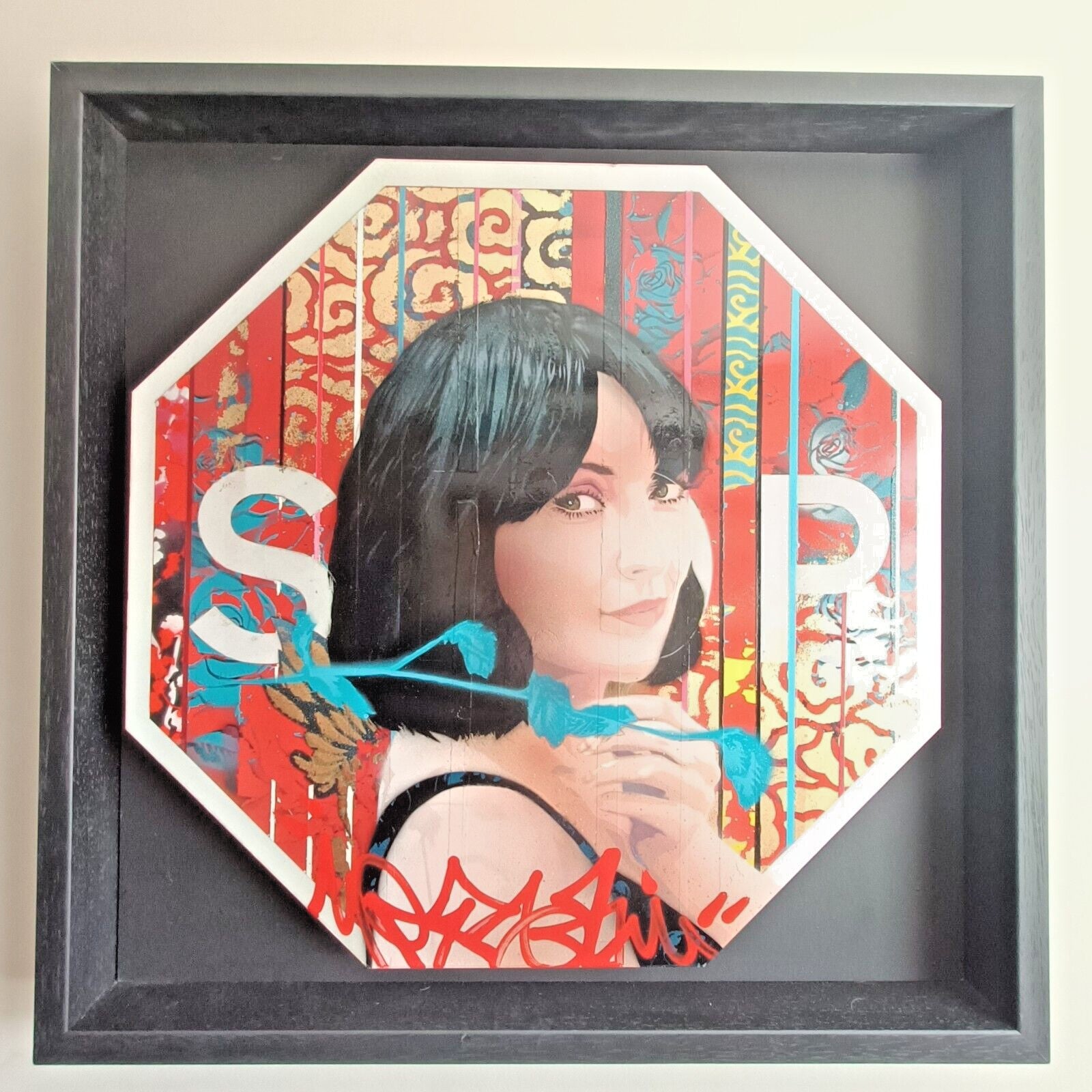 Medium: Mixed media on an upcycled aluminium traffic STOP sign